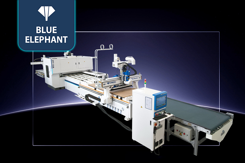 數控鉆切一體機是藍象數控新研發的一款集開料、貼標、打孔,配合封邊機封邊的全新板式家具生產線設備,這套設備不僅優化了傳統的生產流程,還解決了大型無人生產車間投入高,占地面積大等缺陷,讓中小型板式家具廠家擁有更具有性價比的生產線。