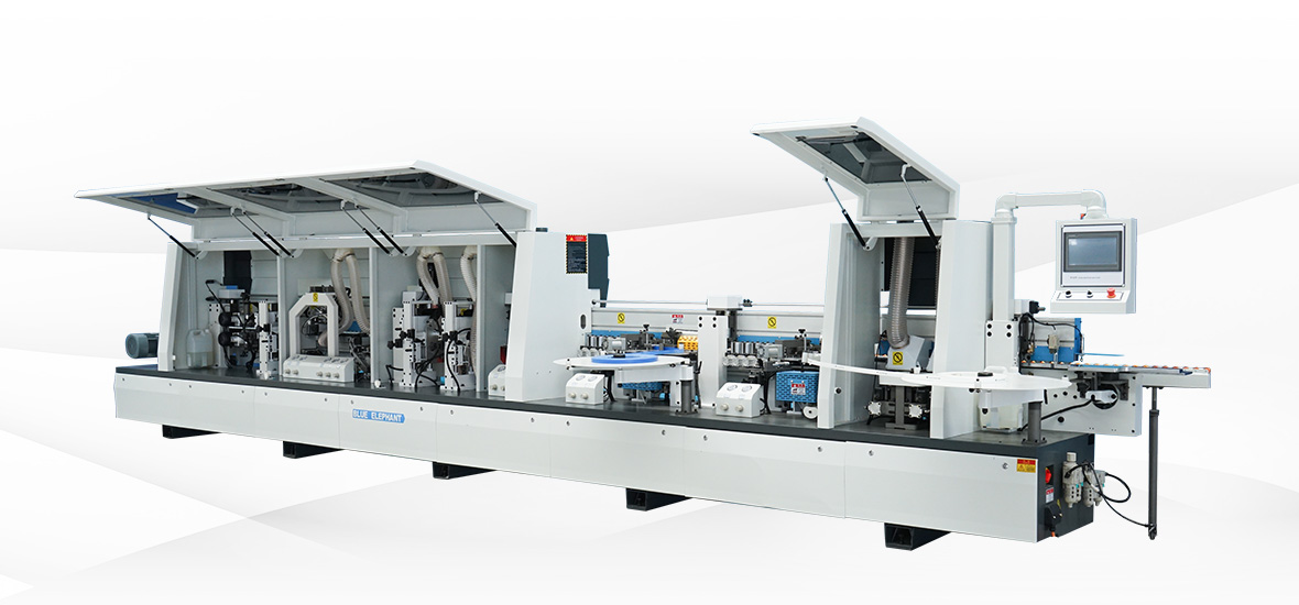 主要功能:預銑-涂膠貼邊1-六輪壓貼-烤燈1-涂膠貼邊2-六輪壓貼-烤燈2-前后齊頭-精修1-精修2-跟蹤修邊-氣動刮邊-平刮-氣動拋光1-氣動拋光2-屏幕一鍵控制前后清洗。